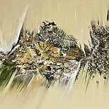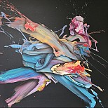 Alloy Dragon mixed mediums op katoen met spieraam.