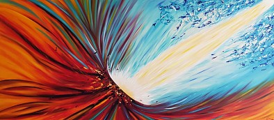 Een globale impressie van het schilderij "Suffering vs Gratitude" 180x80cm.