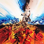 Een globale impressie van het schilderij "Descent of the Annunaki" 120x60cm.