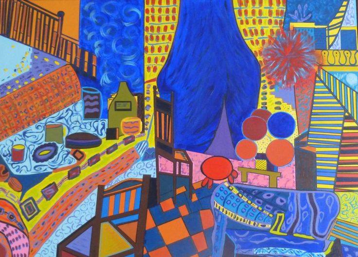 Een globale impressie van het schilderij "Theaterkamer" 140x100cm.
