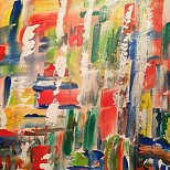 Een globale impressie van het schilderij "Abstract" 100x200cm.