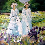 Een globale impressie van het schilderij "Vaas met klaprozen" 50x50cm.